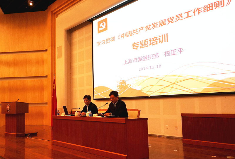 培訓會上,上海市委組織部電化教育中心(黨員服務中心)副主任楊正平作專題輔導報告,從《細則》出臺的背景、修訂的主要特點及內容、如何學習貫徹《細則》等幾個方面進行了深入闡釋,并從理論到實踐、宏觀到微觀的多個角度,重點解析了入黨積極分子的確定和培養教育、發展對象的確定和考察、預備黨員的接收、預備黨員的教育考察和轉正等具體內容。