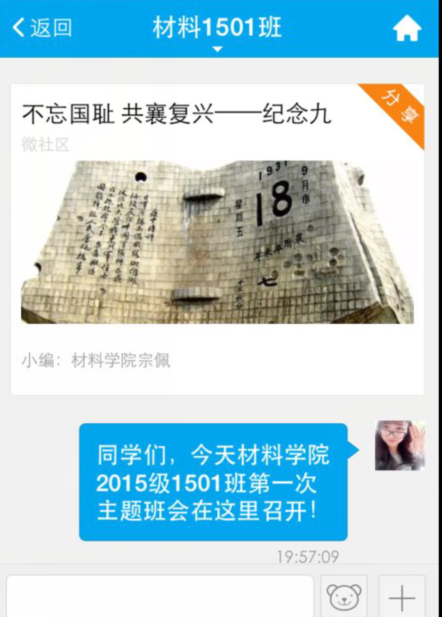 9月18日,材料學(xué)院新生班級(jí)建設(shè)工作基本完成,所有班級(jí)新成立的班團(tuán)委在輔導(dǎo)員的帶領(lǐng)下,在易班班群上展開了918 事件的在線討論。所有同學(xué)都積極的參與進(jìn)來,踴躍的發(fā)表自己對(duì)這一歷史事件的看法。有的同學(xué)說:“今天的和平美好都是革命前輩的鮮血換來的,我們應(yīng)不忘國(guó)恥……”,有的同學(xué)說:“我們永遠(yuǎn)不會(huì)忘記今天這個(gè)沉痛的日子,對(duì)于歷史,忘卻就算背叛……”大家紛紛表示要勿忘國(guó)恥,吸取教訓(xùn),為祖國(guó)今后的發(fā)展盡力!