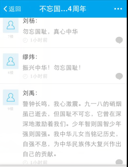 1931年9月18日,這是一個(gè)中國(guó)人應(yīng)該記住的日子。在84年前的今天,日本開始了對(duì)中國(guó)的侵略,中華民族的苦難從此到來。而今天,當(dāng)空中想起了那肅穆的警鐘,材料學(xué)院2015級(jí)的全體同學(xué)也在易班網(wǎng)上平臺(tái)發(fā)起了主題討論,對(duì)這個(gè)歷史事件進(jìn)行了深刻的反思和紀(jì)念。