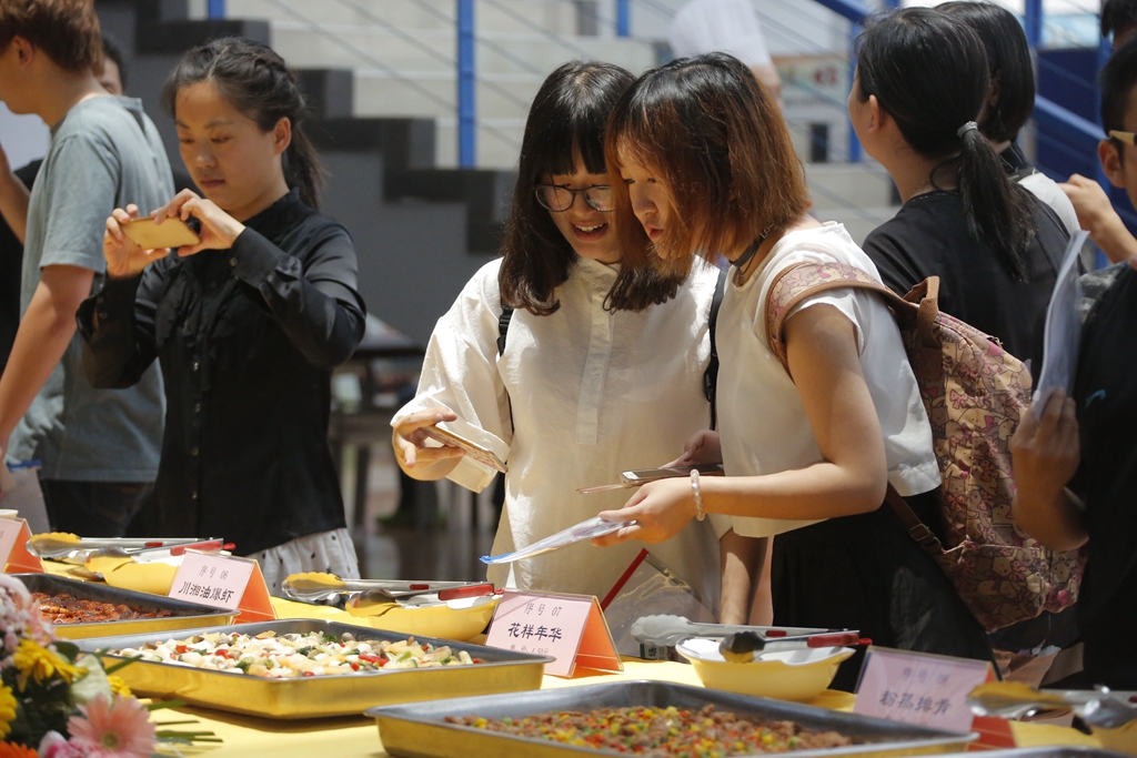 6月6日中午,后勤集團松江校區飲食部“廚藝比賽展示”暨“我最喜愛的十大食堂菜品”評選活動在松江校區大學生活動中心舉行。此次有80余道菜品參與評選,200位師生評審現場品嘗并為自己喜愛的菜品投票。活動將通過線上線下相結合的方式選出東華大學松江校區“我最喜愛的十大食堂菜品”。
