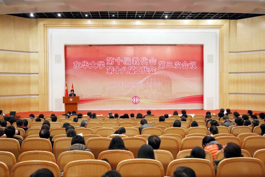 12月20日,我校第十屆教代會暨第十八屆工代會(以下簡稱“雙代會”)第三次會議在松江校區開幕,會議聽取和審議學校行政工作報告和2015年度財務狀況報告。校長蔣昌俊,黨委副書記、校工會主席劉淑慧,黨委副書記崔運花,黨委副書記兼紀委書記金海燕,副校長劉春紅、邱高、李永智、卿鳳翎、陳革等出席會議,本次雙代會正式代表、列席代表等近200人與會。劉淑慧主持開幕式。