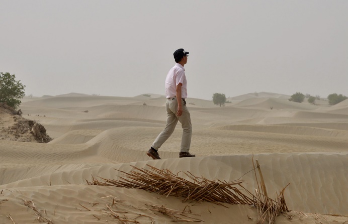 邱夷平帶領(lǐng)小分隊(duì)穿越沙漠公路從阿克蘇直抵和田地區(qū)