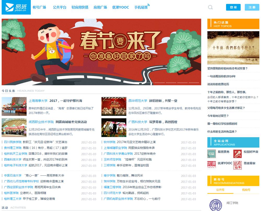 易班2015年起開(kāi)始面向全國(guó)高校推廣,除申城各級(jí)各類學(xué)校外,現(xiàn)已覆蓋16個(gè)省區(qū)市的282所高校。