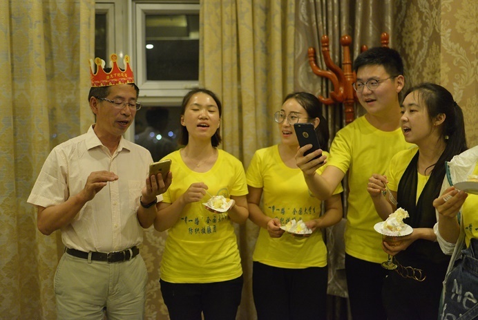 援疆團(tuán)學(xué)子為邱夷平(左一)過(guò)62歲生日