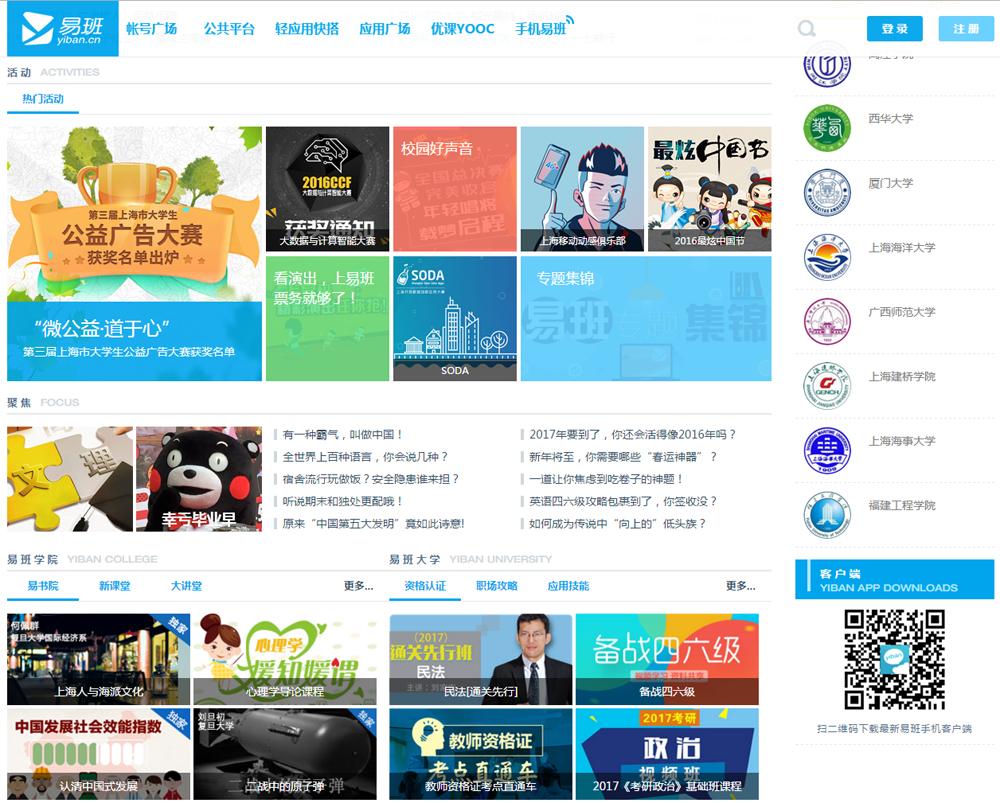 上海高校有一個(gè)最大的班:易班。截至2016年底,這個(gè)“網(wǎng)班”里,滬上學(xué)生實(shí)名注冊(cè)用戶逾100萬(wàn)人,日均頁(yè)面瀏覽量達(dá)數(shù)百萬(wàn)次。最新數(shù)據(jù)顯示,開(kāi)班7年來(lái),易班學(xué)生用戶增長(zhǎng)70余倍,從2009年時(shí)的6萬(wàn)多名增至目前的450多萬(wàn)名。在教育部、國(guó)信辦推動(dòng)下,易班2015年起開(kāi)始面向全國(guó)高校推廣,除申城各級(jí)各類學(xué)校外,現(xiàn)已覆蓋16個(gè)省區(qū)市的282所高校。