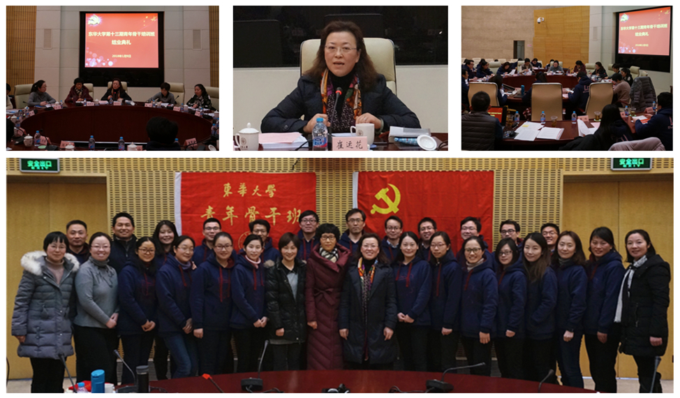 培訓班班長、信息科學與技術學院劉華山老師會上作培訓班總結。本期培訓班共設“理論學習與黨性修養”、“高等教育與學校發展”、“成長成才與素質能力”和“革命傳統與理想信念”四個篇章,在每一篇章結束時組織學員論壇開展交流研討。在“高等教育與學校發展”篇章中,校黨委書記朱民、黨委副書記劉淑慧、副校長劉春紅、邱高、卿鳳翎,圍繞青年教師成長、思想政治工作、時尚產業、人才培養質量、人才隊伍建設等方面作專題輔導;在“理論學習與黨性修養”與“成長成才與素質能力”篇章,上海市委黨校黃力之、松江區委黨校副校長陳超、市委黨校陳方劉、華東師范大學曹景文、我校人文學院廖大偉等專家圍繞馬克思主義基本問題、國內外政局形勢、傳統文化、習近平統戰思想、上海城市發展等專題做了深入淺出的講解,還組織學員開展赴中共一大會址現場教學、“老干部工作和青年成長”座談交流等活動;在“革命傳統與理想教育”篇章,全體學員赴井岡山接受井岡山精神洗禮,了解黨史國情,加強革命傳統和理想信念教育。本期培訓班還組織了專題調研,讓青年骨干深入思考學校在改革發展中面臨的問題、解決途徑,增強改革創新意識,提高推動學校發展的能力。