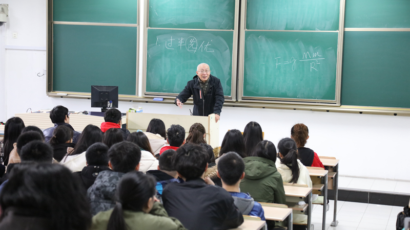 懷揣著對學生的責任感和對教學的熱愛,退休后的陳孩未老師加入了東華大學關心下一代工作委員會講師團,用另一種身份繼續(xù)為學生傳道授業(yè)解惑。每年9月,數(shù)千名新生在陳老師的“大學高數(shù)第一課”中開啟了高數(shù)學習之門,他生動精彩的講解、風趣幽默的語言和忘我的投入精神,深深地感染了每一名學生。“每個學生背后都有一個家庭,我自己也有孩子,我希望能做他們剛進大學時候的引路人,盡一份責任”。許多學生在聽了陳老師的講座后,堅定了學好高等數(shù)學的信心,“高中時讓我頭痛的數(shù)學,如今卻讓我熱血沸騰。”