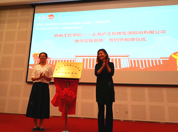 會上,機械工程學院副院長徐洋與上海滬工焊接集團股份有限公司人力資源總監唐志娟分別代表學院和企業簽訂了雙方合作協議,并共同為學院“教學實踐基地”揭牌。會議還聘請了學院首批“領雁計劃”科創導師,進一步提升學院學術與就業的核心競爭力。機械學院黨委副書記李寧蔚啟動了“黨建引領 學習能力提升年”活動。