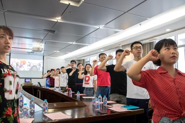 (雙方黨員面向黨旗宣誓,重溫入黨誓詞)