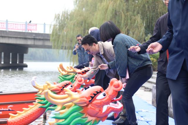 揭牌儀式上,劉勇代表捐贈企業致辭,他表示,水上運動中心是國內高校第一個由校企合作成立的水上運動中心,開創了校企合作辦體育的新模式,籌備和建設工作得到校領導及各相關部門的重視和支持,“中心”的成立將豐富并完善東華大學運動項目的構架,為全體師生提供優質的服務。體育部主任朱江華代表學校接受捐贈,發展聯絡處處長、校基金會秘書長瞿斌向企業代表頒發捐贈證書,8位校內外嘉賓代表為龍舟點睛。