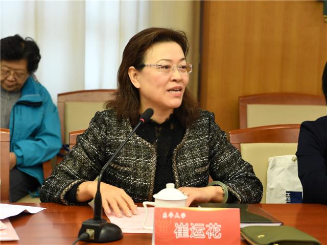 會上,崔運花對東華大學概況和近年來學校事業發展情況作了簡要介紹。崔運花談到,學校黨委高度重視關工委工作,不斷加強校院兩級關工委組織建設,不斷加大對關工委工作的經費、場地等各方面保障支持力度,加強關工委工作制度建設和隊伍建設。歷經多年發展和探索,已經形成了由橫向“銀發講師團、教學巡視組、特邀黨建組織員、研究生督學組、老教授咨詢組”五個功能組,縱向13個學院關工委分會、130余位離退休老教授、老干部組成的全覆蓋的關工委工作隊伍體系和多方位的育人新格局。近年來,學校關工委不斷深化拓展工作內容,配合學校主渠道開展了大量有益的工作探索和實踐,特別是在大學生思想政治教育、基層黨建工作、加強學風建設和青年教師培養方面發揮了重要作用,為推動學校人才培養工作做出了積極貢獻,多次得到教育部和上海市教育關工委的肯定和表彰。