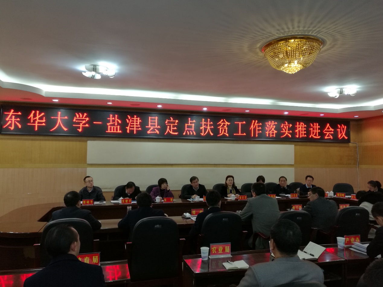 在鹽津縣,朱民一行與鹽津縣委、縣政府領導召開了扶貧工作落實推進會,就進一步推進落實東華大學——鹽津縣定點扶貧工作進行了交流。朱民對鹽津縣與東華大學通力合作落實好定點扶貧工作所做出的努力表示感謝。朱民表示,東華大學堅決貫徹落實習近平總書記對扶貧工作的重要指示,堅決踐行“兩個維護”,牢固樹立“四個意識”,把定點扶貧工作當做重大政治任務,積極推進各項具體舉措落實落地,和鹽津人民心手相牽,建立了深厚友情。鹽津干部群眾在脫貧攻堅戰中表現出的拼搏與奮斗精神,值得全校黨員干部和師生員工學習。作為攜手奮斗的戰友與伙伴,東華大學在定點扶貧工作中將始終堅持立足自身優勢,樹立“扶貧同扶志、扶智相結合”的教育扶貧理念,結合鹽津縣各方面實際需求,助力精準脫貧,打好脫貧攻堅戰。昭通市委常委、副市長趙長勝對東華大學為鹽津脫貧所做的大量工作表示感謝,并希望學校進一步發揮高校優勢,加大對專業人才引入等方面的支持。鹽津縣縣長鄭磊介紹了鹽津縣脫貧攻堅工作推進情況。推進會上,學校與鹽津縣簽訂了“東華大學扶貧鹽津教育基金”和“東華大學與鹽津縣人民政府農副產品采購協議”。