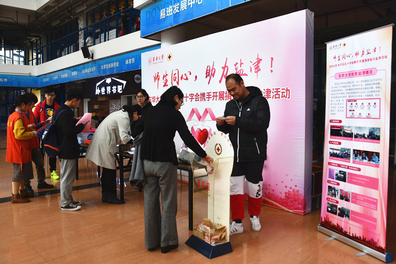 活動(dòng)吸引了大批師生踴躍參加。長(zhǎng)寧區(qū)紅十字會(huì)在兩校區(qū)擺設(shè)捐款箱,并安排工作人員到現(xiàn)場(chǎng)指導(dǎo)、監(jiān)督、管理,確保合法合規(guī)開展募捐活動(dòng)。從個(gè)人到機(jī)關(guān)、學(xué)院、支部,大家紛紛慷慨解囊,單筆善款額度從幾十元到上千元不等。一位在機(jī)關(guān)工作不愿意留下姓名的捐款老師說:“早就了解到學(xué)校對(duì)鹽津進(jìn)行了多方面扶貧,現(xiàn)在能通過捐款為鹽津脫貧做些力所能及的幫助很有意義。”