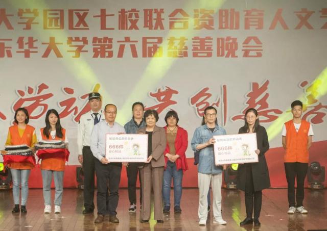 活動設置了“致敬身邊的勞動者”特別環節。東華大學慈善愛心屋捐贈千余件愛心物品,將于五月陸續發放給校內安保、后勤、宿管等一線勞動者。晚會現場,作為接收愛心物品代表的保安江師傅表示“請同學們放心,我們一定會不遺余力地保障校園安全”,保潔張阿姨說“我們每天都會把教室打掃得干凈整潔,為老師和同學們提供最好的服務”。真誠而樸實的話語,讓現場師生深受感動。松江大學園區七所高校的同學自編自導自演的文藝節目把現場氛圍推向高潮。同學們用藝術的方式講述生活的歡聲與笑語,用愛與善意溫暖校園,并表示要為社會慈善事業發展與進步做更大貢獻。