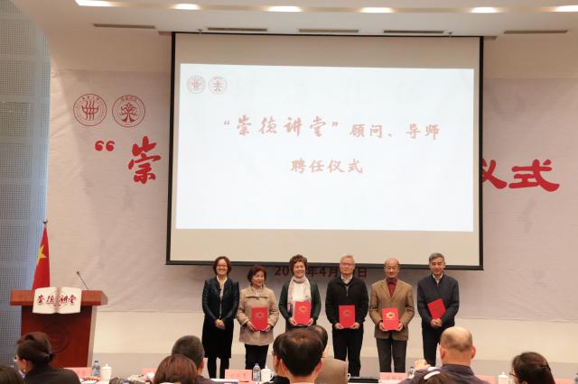 在“崇德講堂”顧問、導師聘任儀式上,校關工委常務副主任浦解明受聘為顧問,關工委講師團成員王依民、賀善侃、袁琴華、顧莉琴受聘為導師。劉淑慧為他們頒發聘書。