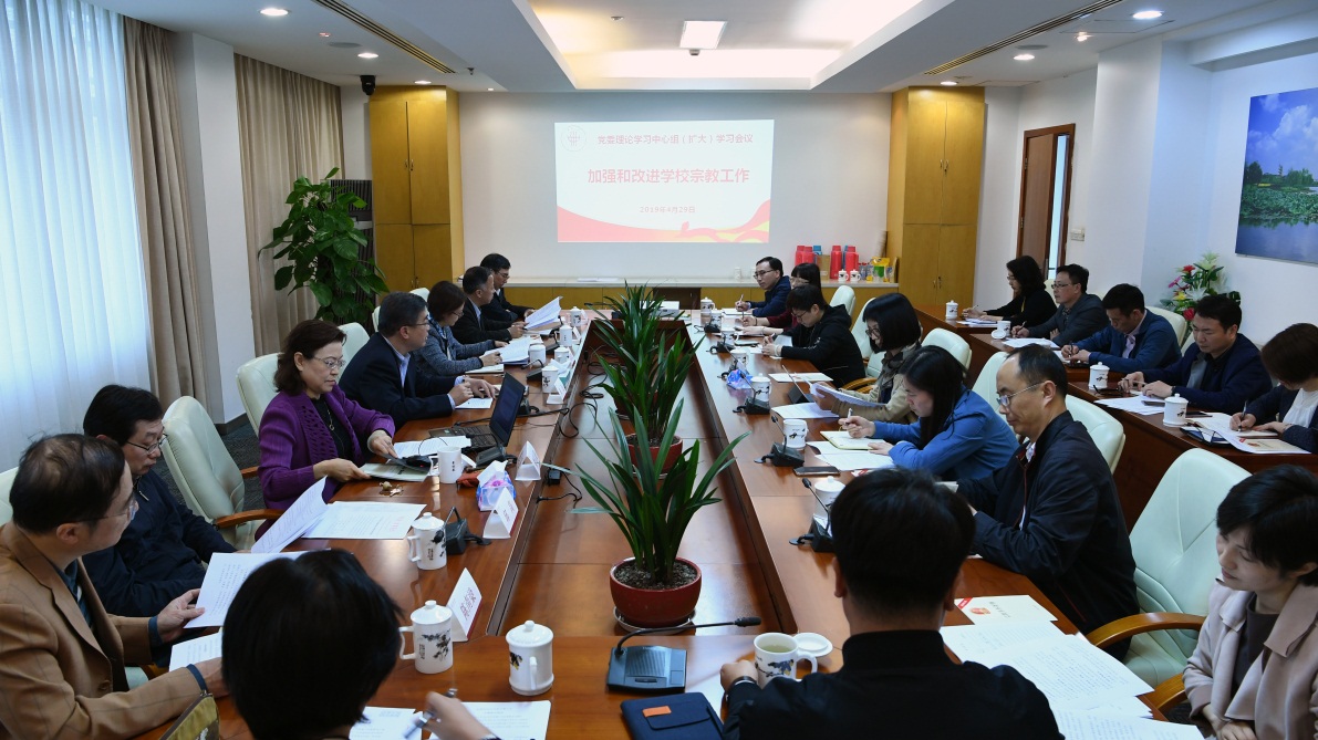 4月29日,校黨委理論學(xué)習(xí)中心組召開黨委理論學(xué)習(xí)中心組(擴大)學(xué)習(xí)會,就加強和改進學(xué)校宗教工作進行專題學(xué)習(xí),校領(lǐng)導(dǎo)集體學(xué)習(xí)了習(xí)近平總書記關(guān)于宗教工作的重要論述和重要指示精神。黨委書記朱民主持學(xué)習(xí)會。