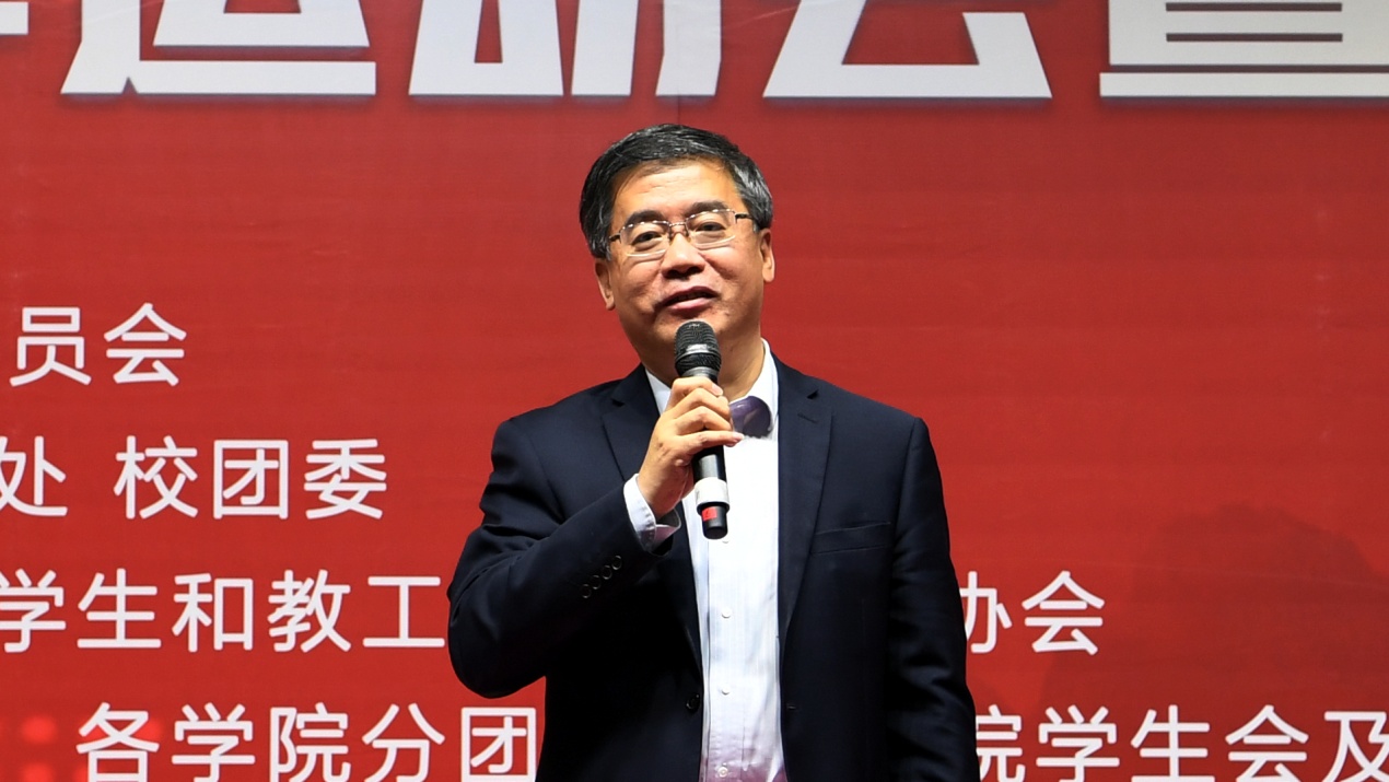 蔣昌俊致開幕辭,代表學校向運動會的召開和體育節的開幕表示祝賀,向各位工作人員、裁判員、運動員表示感謝。他指出,同學們的體質與健康關系國家和民族的未來,學校歷來具有優秀的體育傳統,校一年一度的運動會,不僅僅是體育競技的盛會,更是一次對自我的挑戰和超越,他希望全體運動員將“更高、更快、更強”的體育精神內化成為百折不撓的信念與理想,頑強拼搏,賽出水平,賽出風格,更希望大家在運動會這個舞臺上,以奮發有為、昂揚向上的精神狀態向新中國70華誕獻禮!