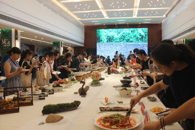 從遂昌的田間地頭到東華的食堂餐桌,雙方廚師在后廚切磋交流,在前廳觀賞互鑒,將遂昌的飲食特色與東華的飲食文化有機結合。