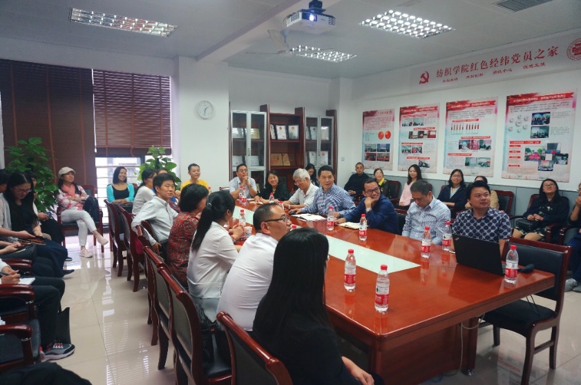 調研會上,顧伯洪從學院概況、人力資源、科研情況、硬件平臺、國際合作交流、學科建設等全方位介紹紡織學院。李俊隨后介紹學院學科發展歷史和發展現狀。他表示對此次調研期盼已久,服裝與藝術設計學院作為東華大學“一體兩翼”發展戰略的重要“一翼”,希望雙方能夠在人才培養、專業設置、課程建設、科學研究等方面加強溝通與合作。吳晶表示,兩學院本是“同根而生”,希望以此次調研為契機加深兩院的工作交流,向紡織學院學習學科建設等的先進經驗,加強合作,促進學院高質量發展。