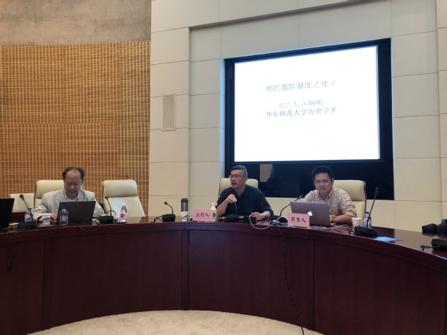 19日下午的兩場學(xué)術(shù)報告分別由楊彬教授與涂鳴華副教授主持。華東師范大學(xué)黃阿明副教授在其報告中,對明代散階制度的形成進(jìn)行了解讀,提出散階制度是以品為核心本位,支配階、動、祿、職的新的職官制度體系。東華大學(xué)楊茜老師的報告從明代江南地區(qū)市鎮(zhèn)發(fā)展情況出發(fā),分析市鎮(zhèn)的自我認(rèn)知,提出市鎮(zhèn)與其區(qū)域內(nèi)權(quán)勢大族的關(guān)系,是研究基層地域社會歷史進(jìn)程的重要方向。上海大學(xué)張呈忠老師的報告提出王志瑞《宋元經(jīng)濟(jì)史》反映了中國斷代經(jīng)濟(jì)史研究興起時期的學(xué)術(shù)特點(diǎn),該書在宋元經(jīng)濟(jì)研究的學(xué)術(shù)史上具有極為重要的開拓意義。東華大學(xué)涂鳴華副教授的報告,回顧了中國新聞史書寫的幾個階段及其范式演變,認(rèn)為以往的中國新聞史研究存在自主性不足和弱化革命等問題,而新革命史視野會為新聞史研究提供新的思路。后一場報告的主題主要是東亞漢字文化圈的科技文化交流與傳播,內(nèi)蒙古師范大學(xué)郭世榮教授梳理了傳教士傳入的自鳴鐘在朝鮮的傳播歷程,介紹幾位朝鮮自鳴鐘制造專家的工作及其對自鳴鐘的考察與追求,闡述自鳴鐘在朝鮮的文化意義。上海交通大學(xué)董煜宇副教授的報告考證、梳理宗藩體制下琉球歷日的演變過程,闡釋其與東亞政治格局變遷之間的密切聯(lián)系。上海交通大學(xué)薩日娜教授的報告圍繞日本江戶時代測繪家伊能忠敬的工作,考察中國明清漢譯西方科學(xué)著作和“蘭學(xué)”著作對其測量工作的影響,分析了其所繪制的地圖對日本測量學(xué)的重要?dú)v史意義。東華大學(xué)徐澤林教授的報告首先回顧了中國古代歷法志的研究史和日本漢學(xué)發(fā)展史,隨后介紹了中國歷法對日本的影響以及被學(xué)術(shù)界忽視的豐富的江戶時代漢歷注解文獻(xiàn),通過具體案例說明江戶時代漢歷注釋文獻(xiàn)的重要學(xué)術(shù)價值,認(rèn)為日本江戶時代對中國傳統(tǒng)歷法的解讀更接近中國傳統(tǒng)數(shù)理天文學(xué)的本意,是值得深入研究的學(xué)術(shù)領(lǐng)域。