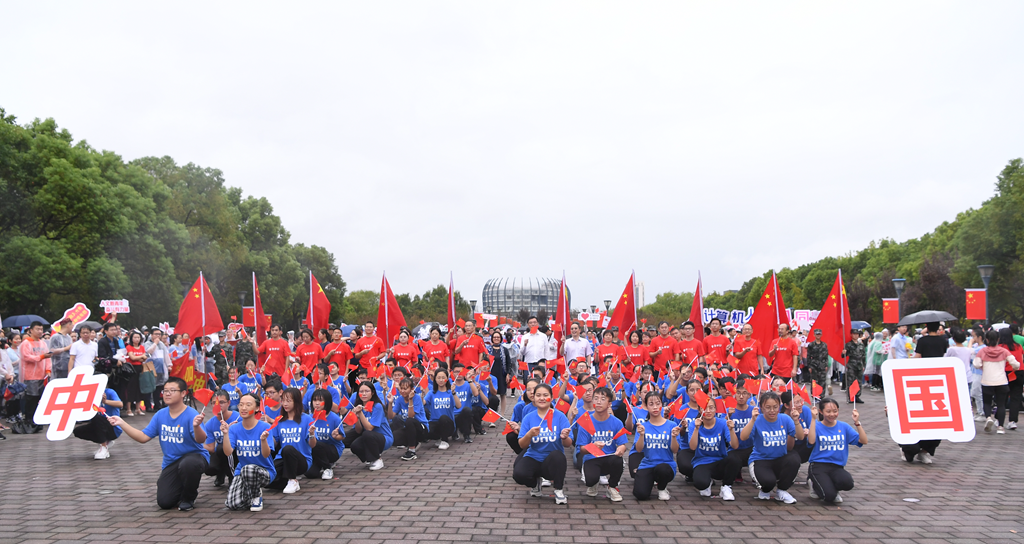 (新教職工參加新中國成立70周年升旗儀式)