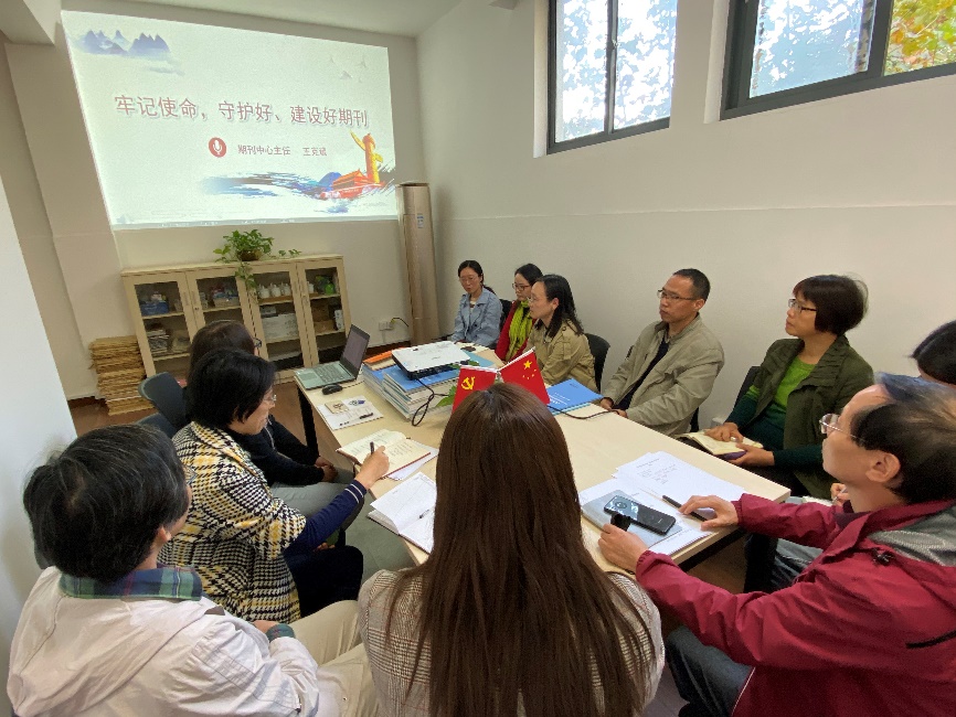 期刊中心主任、黨支部書記王克斌為中心全體成員作題為“牢記使命,守護(hù)好、建設(shè)好期刊”的主題教育專題黨課,期刊中心副主任馬文娟作題為“推進(jìn)《東華大學(xué)學(xué)報(bào)(社會(huì)科學(xué)版)》上水平建設(shè)”的主題教育專題黨課。期刊是意識(shí)形態(tài)的重要陣地,建設(shè)世界一流科技期刊是國(guó)家戰(zhàn)略,作為新時(shí)代的期刊人,要講政治、講大局、講情懷、講追求、講擔(dān)當(dāng)、講創(chuàng)新、講發(fā)展、講奉獻(xiàn)、講有為,要全面落地落實(shí)各項(xiàng)舉措,推進(jìn)期刊建設(shè)上水平。