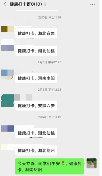這個(gè)寒假隔離在家的紡織學(xué)院輔導(dǎo)員袁海源并不“孤單”,她每天與學(xué)生骨干進(jìn)行線上會(huì)議,了解匯總學(xué)生健康信息,針對(duì)身在湖北的學(xué)生,采取“人盯人”戰(zhàn)術(shù),逐個(gè)溝通確認(rèn),每日線上打卡,她說(shuō)這個(gè)假期很充實(shí)。