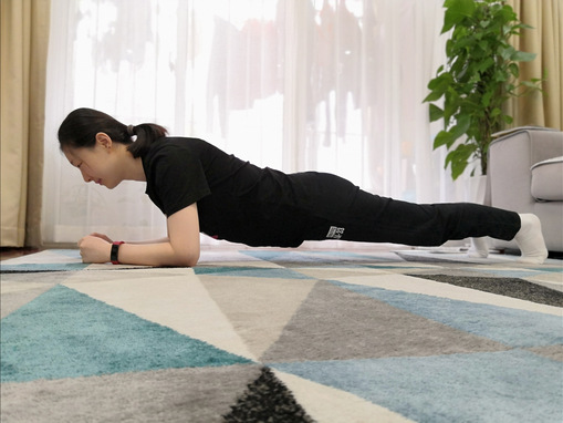 4、做一次俯臥撐,屈臂俯身至肘關節略高于軀干,然后伸臂起身還原