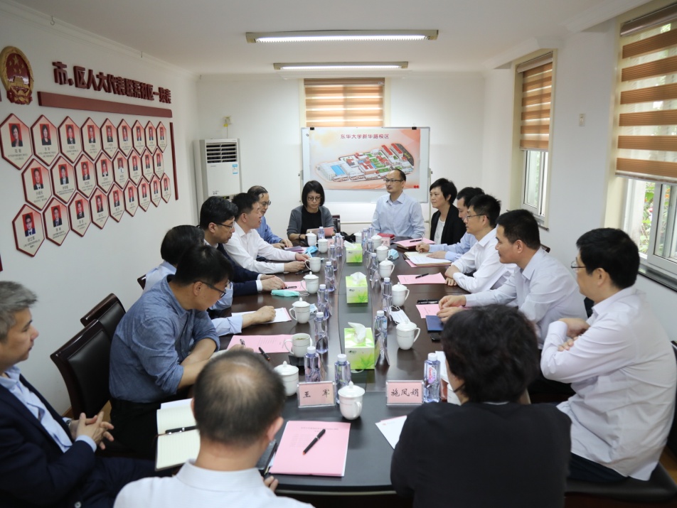 5月25日上午,上海市長(zhǎng)寧區(qū)委書(shū)記王為人一行來(lái)我校新華路校區(qū)訪(fǎng)問(wèn)調(diào)研,黨委書(shū)記劉承功、校長(zhǎng)俞建勇,副校長(zhǎng)卿鳳翎、陳南梁等出席座談會(huì)。