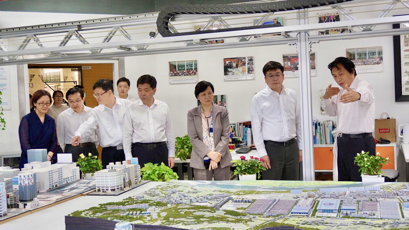 陳群一行首先來到東華大學環境藝術設計研究院,參觀了中國首個“景觀設計模擬實驗室”,聽取了東華設計等學科服務城市規劃與建設的成果匯報。隨后,陳群一行來到東華大學紡織科技創新中心考察,實地走訪各實驗室,了解中心發展及重大科研成果情況,對學校特色學科建設給予肯定。