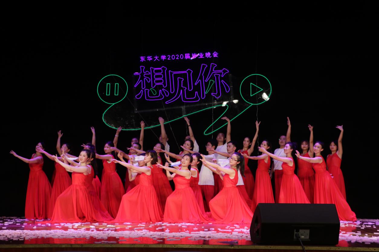 與此同時,以“想見你”為主題的2020屆畢業晚會通過線上直播的方式呈現,超2萬人次在線觀看。因為疫情,今年的畢業晚會在節目編排和人員設置上都與往年有所不同,師生同臺演繹、畢業生積極參與。宿管阿姨、保安大叔、食堂阿姨紛紛走上舞臺,以別樣的姿態向畢業生道別;更有中國科學院院士朱美芳對話畢業生,為彷徨的同學指點迷津。《旗舞東華》集合15幅絢麗“畫卷”,希望同學們在畢業之際“愛校榮校”,銘記“崇德博學、礪志尚實”校訓,不忘東華人的使命;“愛在心中,看長江萬里心潮仍激動”,《櫻花又飛時》是中國疫情防控阻擊戰的縮影,東華33名師生同臺演繹這段刻骨銘心的故事,無數人把“淚目”“中國加油”打在公屏上;《東華帶貨直播間》更是聚焦“消費扶貧”,助力鹽津!一次次地打磨,一遍遍地排練,東華人一道努力,共同打造“有情懷、有內涵、有高度”的東華最后一課。