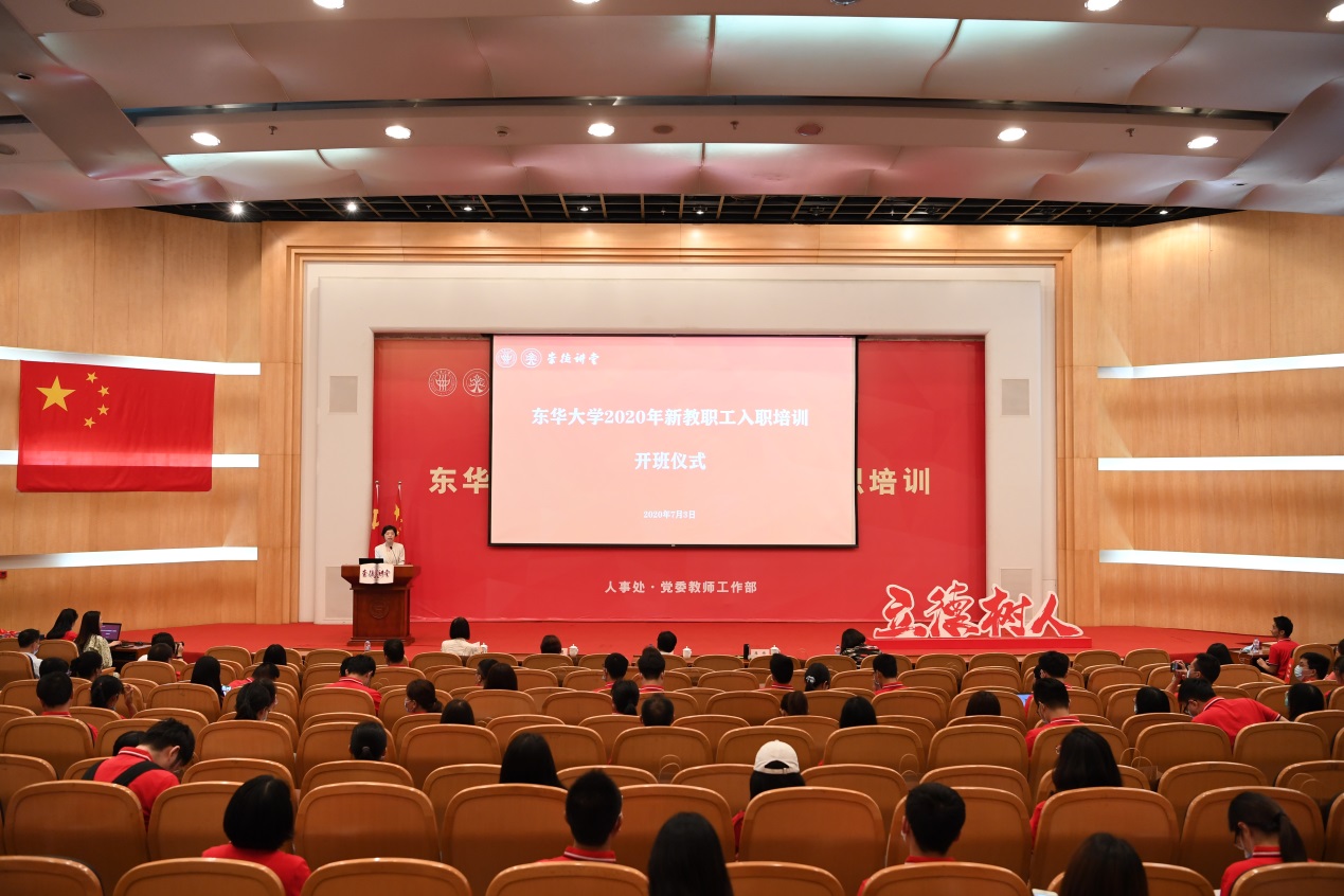 7月3日下午,2020年新教職工入職培訓暨“崇德講堂”師德師風專題培訓在松江校區開班。校長、中國工程院院士俞建勇出席并作入職培訓首場主題報告,黨委副書記劉淑慧出席儀式,相關職能部門負責人參加。儀式由副校長李煒主持。