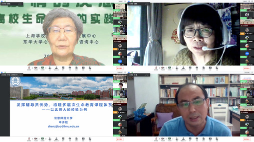 研討會(huì)上,陸曉婭做了“疫情中的生命教育契機(jī)——我的思考與嘗試”的專題分享。她圍繞“什么是生命教育?生命教育的目的是什么?誰來做生命教育?怎樣做生命教育”,從“疫情中向生命提問的25個(gè)問題”開始,引入疫情期大家對(duì)生命、對(duì)自己、對(duì)家人、對(duì)危機(jī)中的反思和學(xué)習(xí)的思考,通過抗疫中生動(dòng)的案例進(jìn)行回應(yīng)。張海燕從“上海市高校生命教育的演進(jìn)及生命教育的內(nèi)涵”、“抗逆力的培養(yǎng)是生命教育的重要議題”、“生命意義與生命價(jià)值的引領(lǐng)”、“不要忽視死亡教育”四個(gè)方面分享了自己疫情后對(duì)學(xué)生生命教育的思考。何仁富結(jié)合自己疫情中的工作和研究分享了“大學(xué)開展生命教育的兩個(gè)核心理念和四個(gè)基本策略”。申子姣以“發(fā)揮輔導(dǎo)員優(yōu)勢(shì),構(gòu)建多層次生命教育課程體系”為主題,從課程體系、課程理念、多維度“心教練”團(tuán)隊(duì)建設(shè)、助教團(tuán)崗位設(shè)置、年輕的《生死課》教師養(yǎng)成記、自己進(jìn)行這項(xiàng)工作的收獲體會(huì)等方面分享了北京師范大學(xué)的在生命教育課程體系建設(shè)中的具體實(shí)踐經(jīng)驗(yàn),對(duì)高校進(jìn)行生命教育課程建設(shè)具有很好的參考價(jià)值和指導(dǎo)意義。