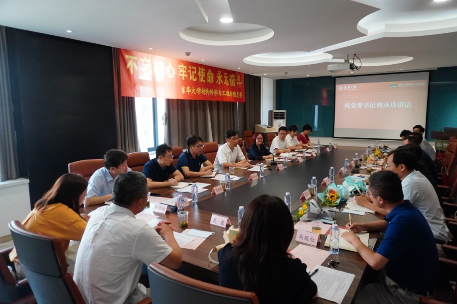 劉承功一行專程慰問了2019年新晉中國科學院院士朱美芳。在與材料學院教師代表座談會上,他對學院教師在人才培養、科學研究、社會服務等方面的工作給予充分肯定。值此總結“十三五”、謀劃“十四五”的重要時期,劉承功希望廣大教師要胸懷世界百年未有之大變局和中華民族偉大復興戰略全局,著力提升學科發展的厚度和寬度,大力推動科學技術創新和優秀人才培育;要進一步加強對青年教師的培養,引導他們努力爭做有情懷、有使命感的好老師,擔負起立德樹人的光榮職責與使命;要加強學校人事人才制度改革,大力營造有利于激發各類人才積極性和創造力的人才生態環境。同時加強優秀教師典型宣傳,弘揚榜樣力量。劉承功最后強調,全校教職員工要不忘初心、牢記使命,砥礪奮發、開拓進取,為教育事業及“奮進東華”建設做出更大貢獻。
