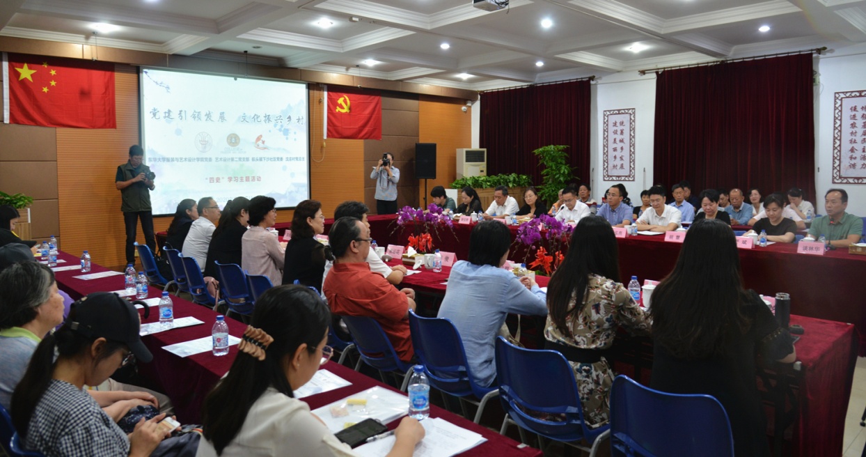 服裝與藝術設計學院藝術二黨支部書記胡杰明、下沙社區黨委副書記嚴斌、沈莊村黨總支書記談林華作交流發言。雙方領導共同為“東華大學黨建聯建暨黨員干部教育培訓基地”“東華大學浦東藝術創作創新基地”揭牌。我校一行還參觀了“黨建引領 文化結對——東華大學2018-2020服院師生作品暨課程成果匯報展”和方孝孺紀念館、沈莊村村史館。