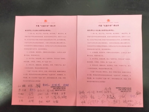 最后,學(xué)生黨支部書記潘攀宣讀“光盤行動(dòng)”倡議書,號召全體黨員共同為建設(shè)文明、和諧、環(huán)保的社會(huì)環(huán)境作出自己的貢獻(xiàn)。全體黨員紛紛響應(yīng)號召,并在倡議書上簽名。支部黨員表示,“常將有日思無日,莫待無時(shí)當(dāng)有時(shí)”,雖然現(xiàn)在生活富足了,但作為當(dāng)代青年,仍要爭做勤儉節(jié)約的傳播者、實(shí)踐者和示范者,樹立崇尚節(jié)約的價(jià)值理念,在強(qiáng)化敬畏感中“立心、立規(guī)、立行”。