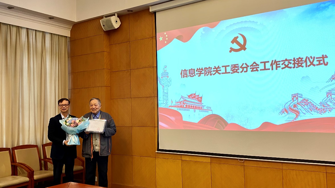 會上,還舉行了東華大學關(guān)工委信息學院分會常務(wù)副主任工作交接儀式,王直杰代表學院黨委向耿兆豐頒發(fā)榮譽證書表示感謝,浦解明代表校關(guān)工委為官洪運頒發(fā)聘書。