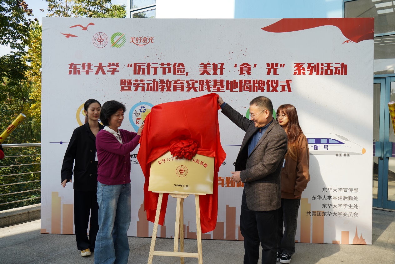 為深入貫徹習近平總書記關于堅決制止餐飲浪費行為的重要指示精神,推動《教育系統“制止餐飲浪費 培養節約習慣”行動方案》有力實施,11月10日,我?!皡栃泄潈€,美好‘食’光”校園系列活動暨勞動教育實踐基地揭牌儀式在松江校區第二食堂舉行,黨委副書記、紀委書記王云駿,副校長李煒出席儀式,共同為“東華大學勞動教育實踐基地”揭牌,并在厲行節儉勞動教育第一站參與體驗披薩制作。相關職能部處負責人、學生代表和食堂員工代表參加活動。