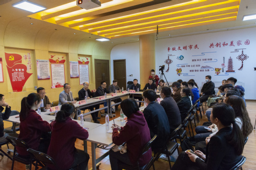 隨后,松江區委宣傳部工作人員、松江大學城的師生代表、廣富林街道黨委工作人員、上林社區代表、市民巡訪團代表一起參加了“松江三人行”理論宣講走基層社會實踐活動座談會。在座談會上市民們就“青年故事”發表自己的感想,了解了松江歷史,感受了高校文化,更學習了中國理論思想,也感受到青年學生的朝氣蓬勃。會上就進一步提升高校理論宣講的品牌效應、更深層次地深入基層等問題展開交流。