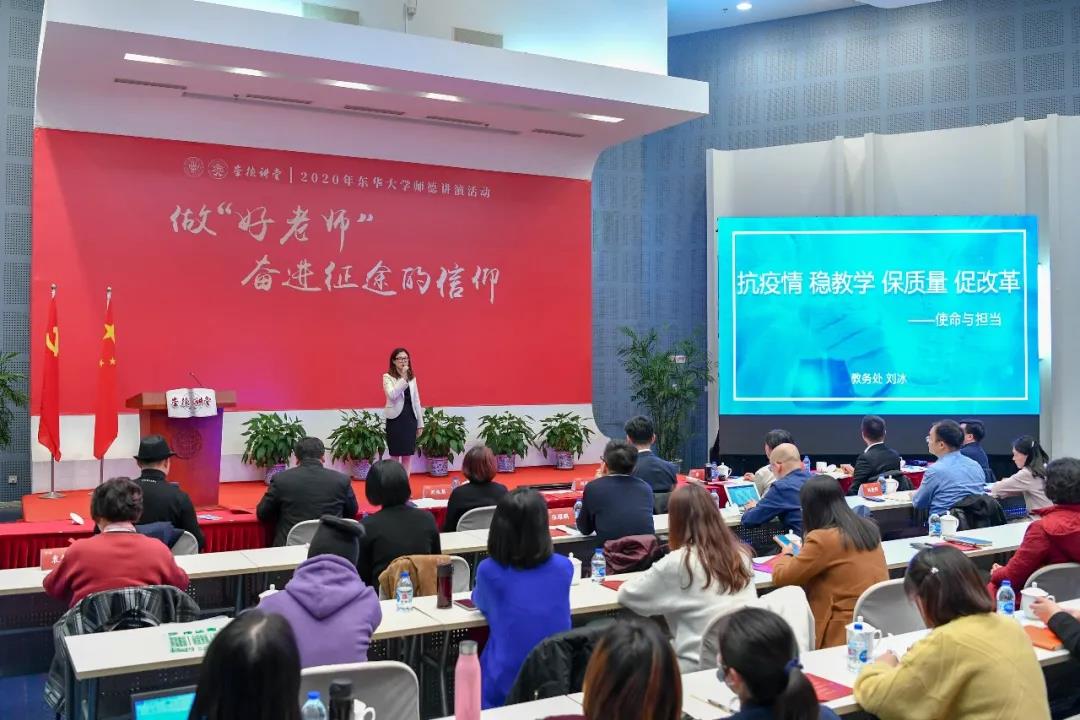 學校師德講演活動已連續舉辦三年,通過深入一線、深入課堂、深入師生發掘師德典型,讓東華師德故事永流傳。廣大教師在講述身邊真切的師德故事中受教育,涵養師德師風,推動全員全過程全方位的師德養成。本次講演活動分初賽和決賽,共有來自二級單位黨組織的21個講演節目參加,12個節目入圍決賽。