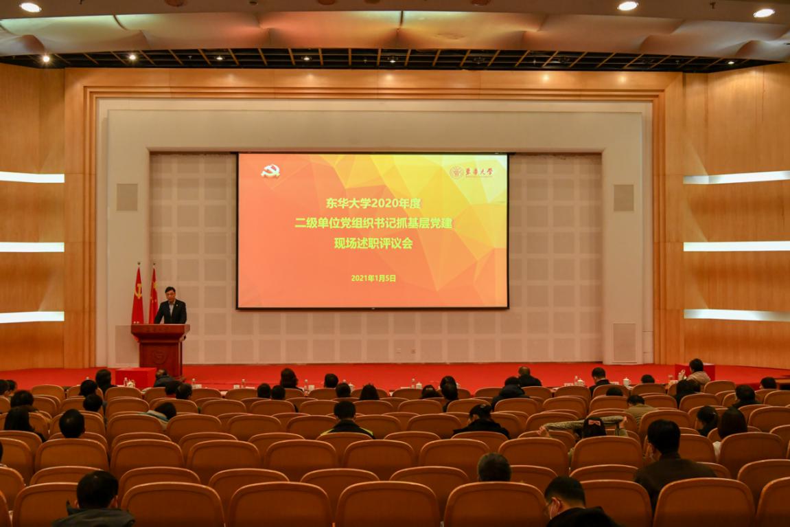 1月5日,學校黨委召開2020年度二級單位黨組織書記抓基層黨建工作現場述職評議會。教育部黨建工作聯絡員劉建中,黨委書記劉承功,校長俞建勇,黨委副書記崔運花,黨委副書記、紀委書記王云駿,副校長邱高、陳革、陳南梁、舒慧生、李煒,黨委常委朱英、任曉杰出席會議,會議由崔運花主持。