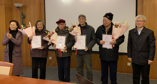 (為吳美芬、范崇文、周開宇、耿兆豐四位老師頒發榮譽證書)