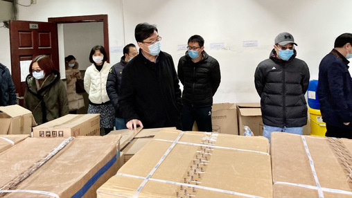 (劉承功檢查防疫物資儲(chǔ)存?zhèn)}庫(kù))