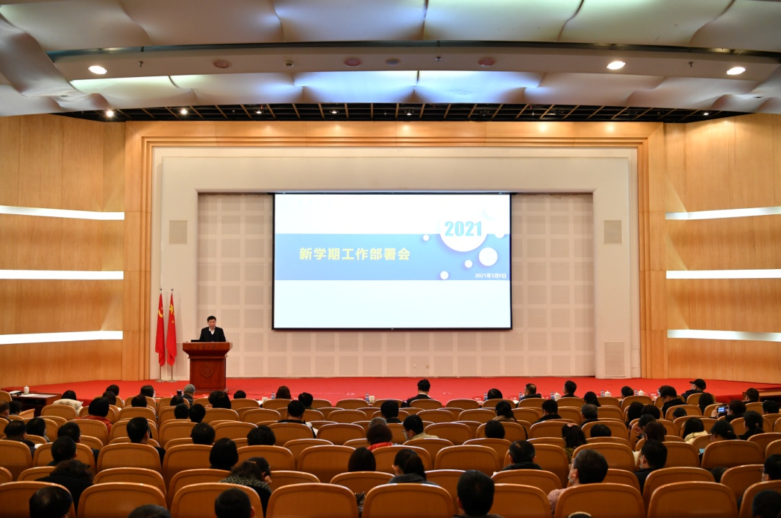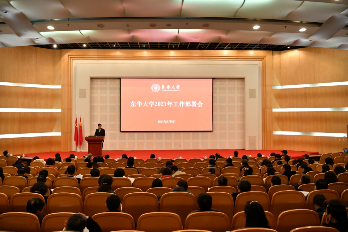 3月9日下午,學(xué)校2021年工作部署會在松江校區(qū)召開。會議強調(diào),要以習(xí)近平新時代中國特色社會主義思想為指導(dǎo),深入貫徹落實黨的十九大和十九屆二中、三中、四中、五中全會精神,深入學(xué)習(xí)貫徹習(xí)近平總書記關(guān)于教育的重要論述和考察上海重要講話精神,深入開展黨史學(xué)習(xí)教育,堅持黨的全面領(lǐng)導(dǎo),全面落實立德樹人根本任務(wù),不斷推進依法治校,立足新發(fā)展階段,貫徹新發(fā)展理念,全面啟動實施“十四五”規(guī)劃,加快構(gòu)建以學(xué)科為統(tǒng)領(lǐng)的高質(zhì)量發(fā)展新格局,以“奮進東華”建設(shè)新實效迎接建黨100周年、建校70周年和學(xué)校第十一次黨代會的勝利召開。