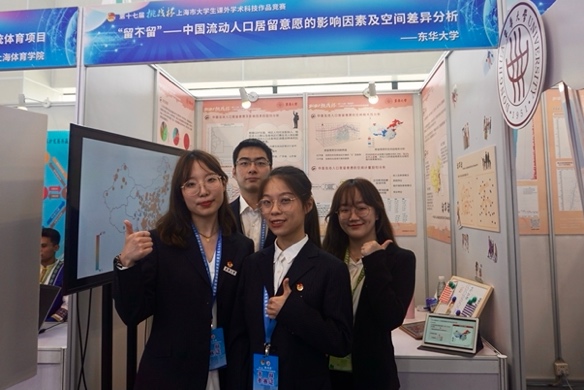 管理學院的“‘留不留’——中國流動人口居留意愿的影響因素及空間差異分析”項目獲得上海市一等獎。團隊通過對2016年全國流動人口動態(tài)監(jiān)測調(diào)查數(shù)據(jù)的詳盡分析,得出了我國居留意愿空間分布東西方向U型分布,南北方向上北高南低的結(jié)論,作品在與通常認知有出入的同時為流動人口的分析提供了全新的切入角度,能夠為提升城市管理水平以及提出流動人口市民化相關(guān)政策做出指導建議,從而促進不同地區(qū)間資源的合理分配,進一步加快我國城市化進程。