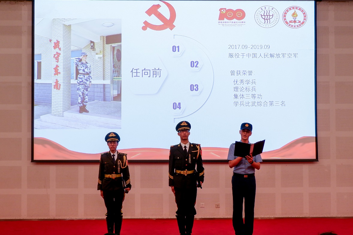 會議伊始,發(fā)展對象培訓班班長接瑩瑩發(fā)言,她表示在黨校的學習培訓期間扎實了理論基礎,提升了思想覺悟,在今后也會堅定理想信念,時刻以黨員的標準要求自己,在學習和生活中勇當先鋒。黨校學員代表們以“學黨史,明初心,知使命”為主題進行學習展示,他們用自己的入黨故事與軍旅生活,呼吁當代大學生將家國情懷融入到不懈奮斗之中。發(fā)展對象代表們高唱建黨百年主題歌曲《少年》,以青春主旋律,展現(xiàn)信息學子的精神風貌。
