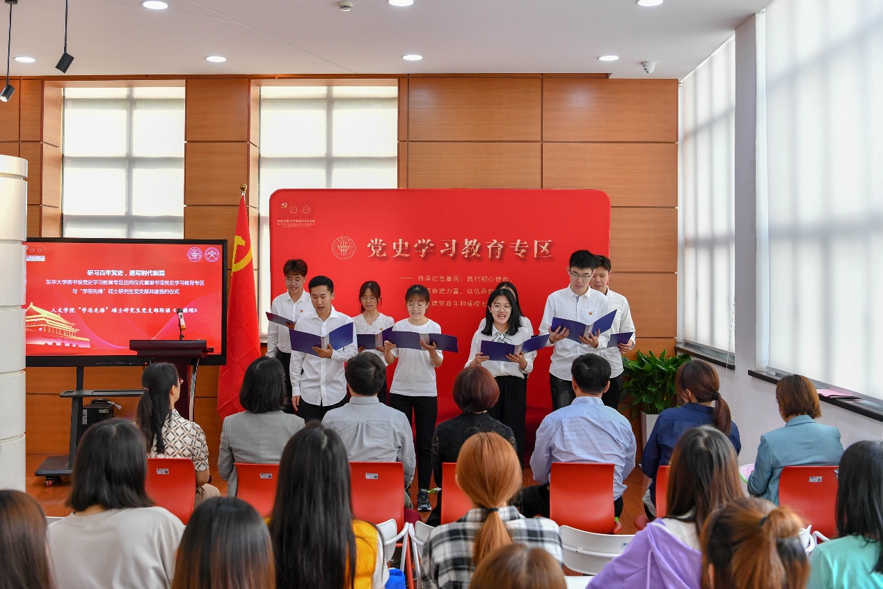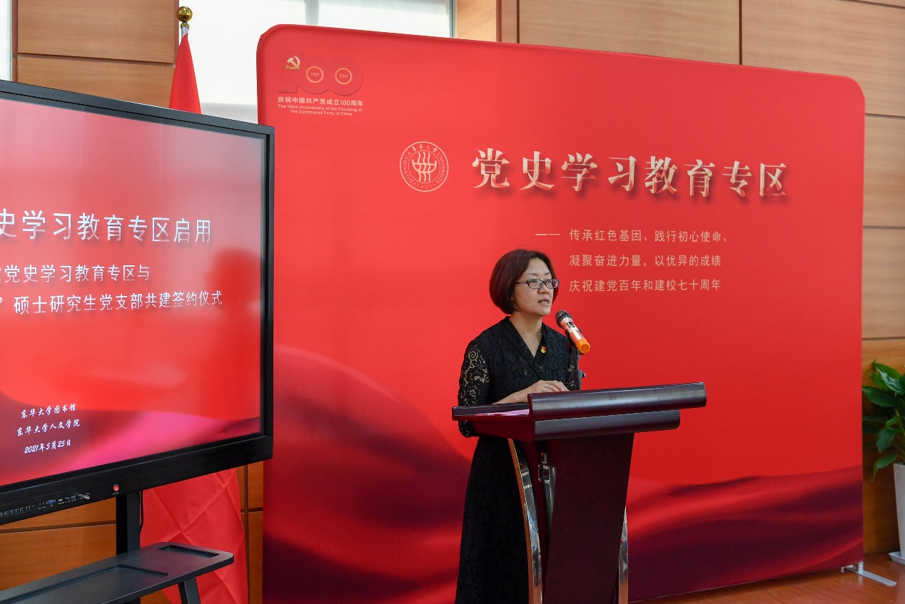 圖書館舉辦黨史學習教育專區啟用儀式暨人文學院“學思先鋒”碩士生黨支部與黨史學習教育專區共建簽約儀式