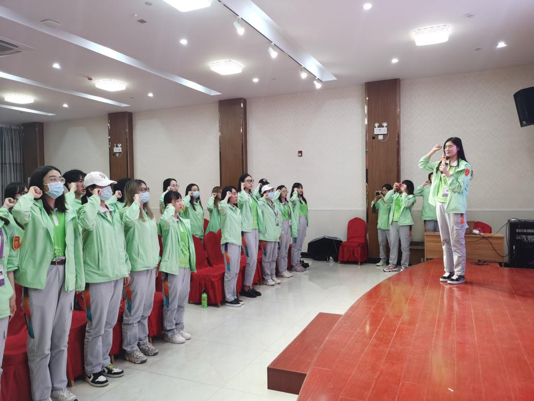 志愿者代表陸凌雨向同學(xué)們介紹了第十屆中國(guó)花卉博覽會(huì)的舉辦背景及時(shí)代內(nèi)涵,以花博會(huì)志愿者主題曲MV《我的家是花》,帶領(lǐng)志愿者一起回顧了開(kāi)園以來(lái)的工作內(nèi)容并分享交流服務(wù)心得,勉勵(lì)志愿者們不忘初心,以良好的精神面貌和專(zhuān)業(yè)水平為花博會(huì)保駕護(hù)航。志愿者們結(jié)合“尋訪紅色印記”主題活動(dòng),集體學(xué)習(xí)了園內(nèi)五處紅色景點(diǎn),分別是寓意“兩個(gè)一百年”的兩朵白玉蘭、浙江園中的浙江南湖紅船模型、江西園中的星火模型、上海園中的石庫(kù)門(mén)建筑、陜西園中的“延安精神永放光芒”模型。通過(guò)講述這些景點(diǎn)背后的黨史故事,讓同學(xué)們感受到中國(guó)共產(chǎn)黨在帶領(lǐng)中國(guó)從站起來(lái)到富起來(lái)到強(qiáng)起來(lái)的偉大征程。現(xiàn)場(chǎng)全體師生共同重溫入團(tuán)誓詞,堅(jiān)定服務(wù)信念。