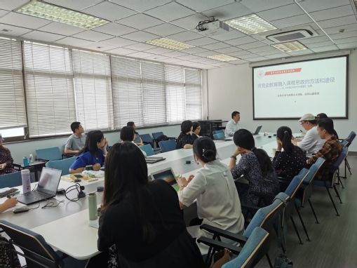 “課堂教學要實現知識性與價值性、學理性與政治性、思想供給與學生獲得感相統一……主要介紹六大教學方法:專題式教學法、案例教學法、問題鏈教學法、情景劇演示教學法、直觀教學法、社會實踐教學法……”5月31日下午,服裝與藝術設計學院的會議室里,馬克思主義學院白華山副教授應邀作《將黨史教育融入課程思政的方法和途徑》的專題講座,以《中國近現代史綱要》為例介紹了黨史教育融入課程思政的路徑。學院黨政班子成員和近二十位青年教師參加學習。據悉,這次講座是學院黨委中心組學習(擴大)會,也是學院黨委在黨史學習教育中圍繞“我為群眾辦實事”開展的系列活動之一,旨在為新進教師、青年教師開展專題培訓,加強師德師風建設,幫助青年教師立足第一課堂,開展課程思政的有效探索。