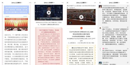 人文學院引導青年學子認真學習原文原理并積極思考,以全國百個研究生樣板黨支部“學思先鋒”碩士研究生黨支部為引領,深入實施理論學習提升工程,充分發揮樣板黨支部“領頭雁”效應。開創“紅色領學”專欄,組織“學思先鋒”碩士研究生黨支部及時學習新思想、新政策,領會會議精神實質并進行理論學習專題推送30余期,總閱讀量破萬,通過跟帖、留言等形式與師生黨員、發展對象、入黨積極分子互動交流,分享思考感悟。同時,學院組織開展“百名書記講黨課”活動,梳理百年黨史中的百個“第一”,學院黨委書記、黨委班子成員、支部書記、先進典型紛紛走到鏡頭前,面向師生講授黨史中重要轉折點的歷史故事、英雄事跡,輻射帶動學院師生黨員和團員青年共同學習,用黨的創新理論武裝師生頭腦。
